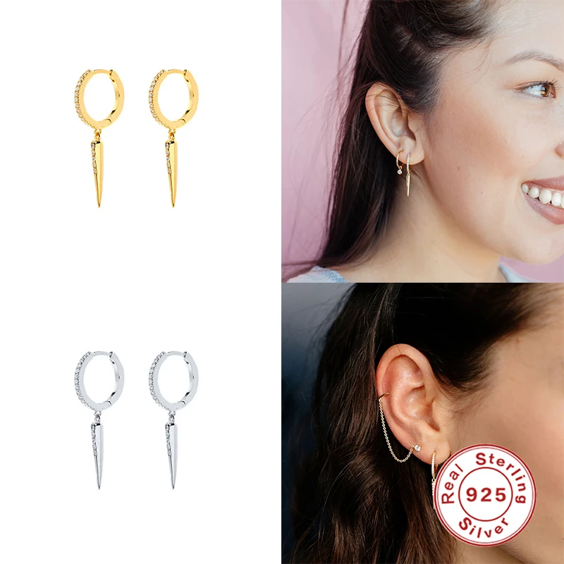 Изысканные ювелирные изделия 925 пробы серебряные сверкающие фианиты Готический пирсинг серьги-кольца для влюбленных пар женские серьги