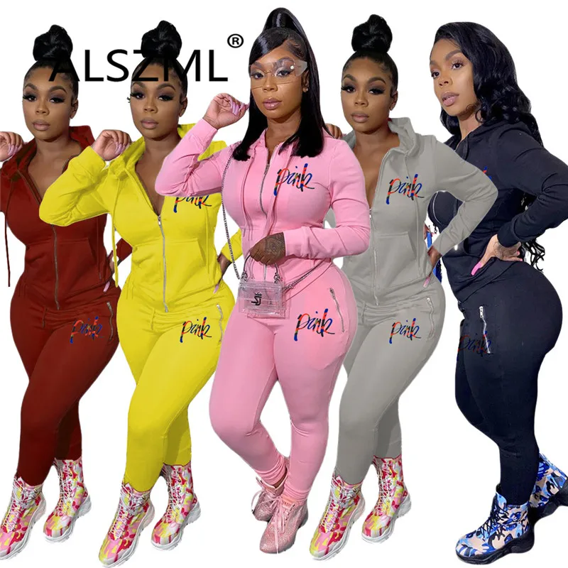 Розового цвета с принтом букв из Для женщин спортивный костюм с длинными рукавами, комплект из 2 предметов, топы и длинные брюки спортивный костюм в комплекте с набором подходящих сумочек