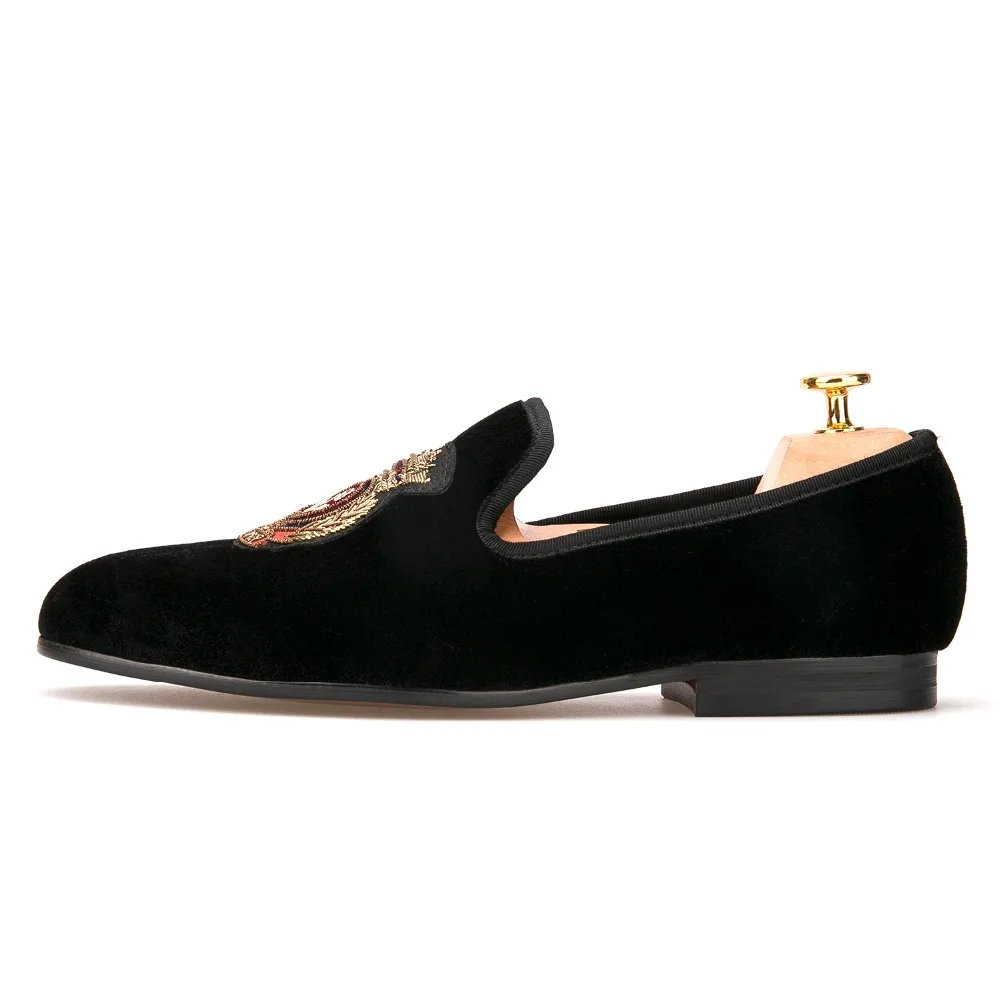 Мужские бархатные туфли на плоской подошве, с вышивкой, размеры 6-14