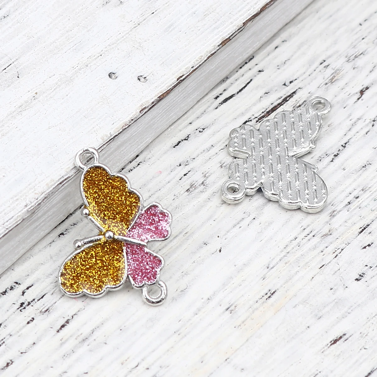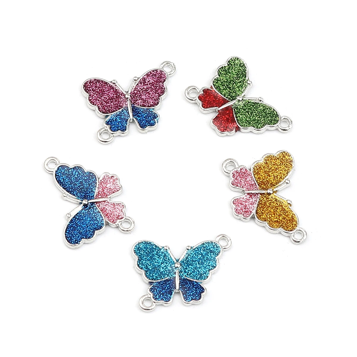 Соединители-бабочки разъемы для ювелирных изделий из цинкового сплава с насекомыми и блестками в виде животных серебристого цвета 19 мм x 17 мм для самостоятельного изготовления ювелирных изделий, 10 шт.
