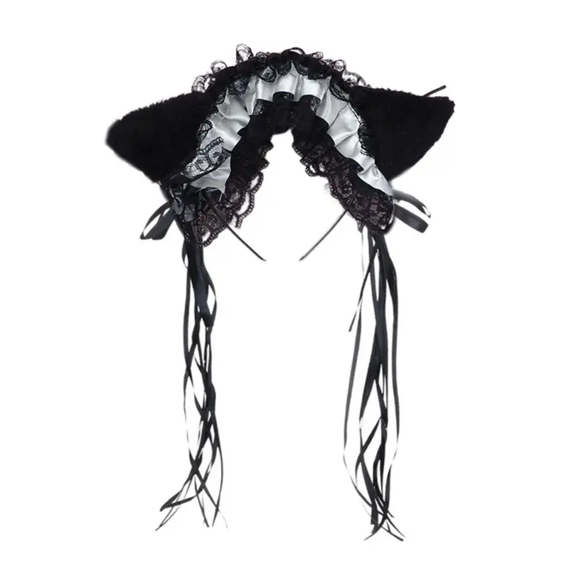 Ободок для волос Женский, кружевной, с оборками, плюшевые кошачьи ушки, колокольчик с лентой, для косплея, Лолита