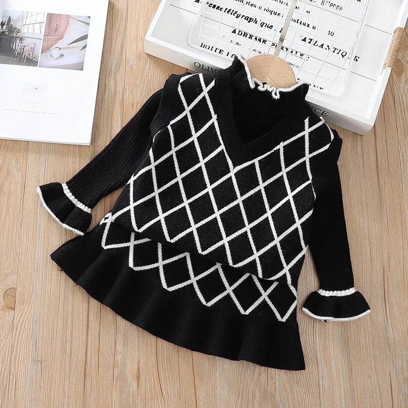 Осенняя детская одежда, вязаный свитер, жилет, Топ с длинным рукавом и юбка, Модный комплект одежды для маленьких девочек в Корейском стиле из 3 предметов, зимние теплые наряды