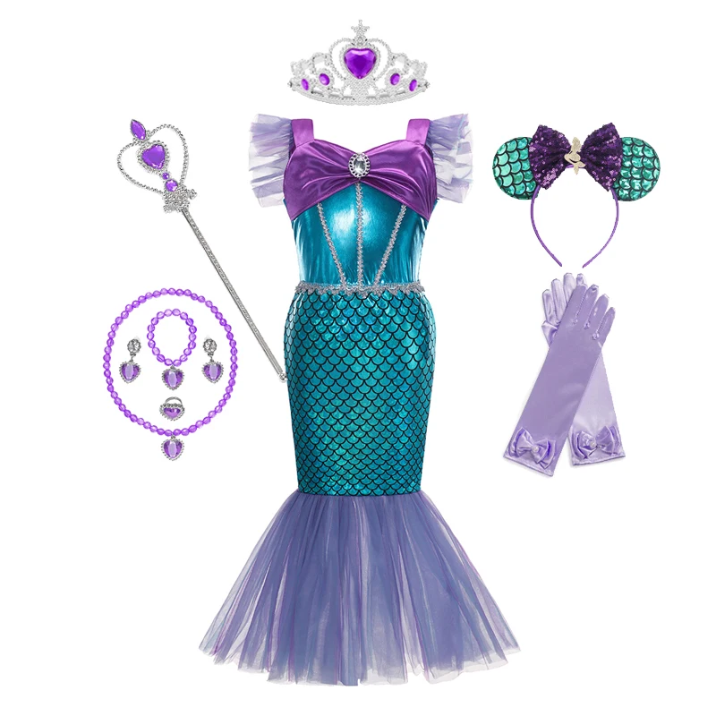 Платье принцессы для девочек, костюм с блестками и маленькой русалочкой, модная одежда для девочек, детский наряд для пляжной вечеринки, косплей, Хэллоуин