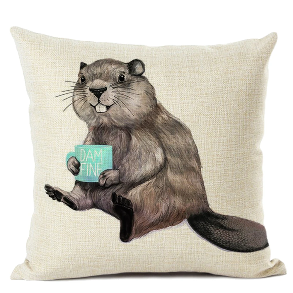 Симпатичная льняная Подушка с животным рисунком, диван для гостиной...