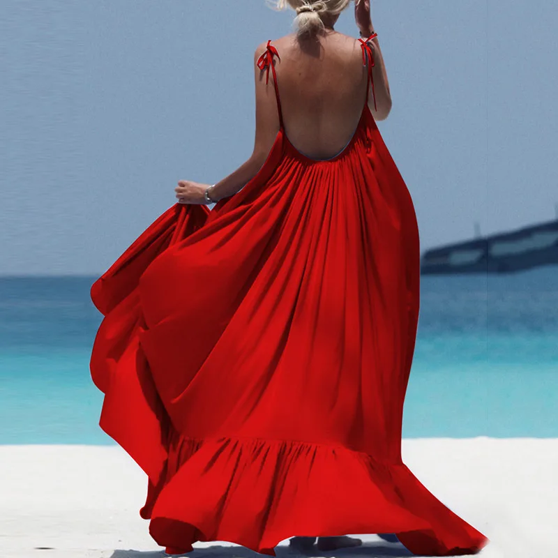 Летнее платье 2020, модное женское платье-комбинация с открытой спиной и оборками, пляжная одежда на шнуровке, Повседневная стильная одежда, женское вечервечерние платье