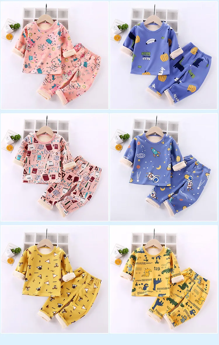 Зимнее детское термобелье, утепленные флисовые пижамные комплекты для мальчиков и девочек, детская пижама, теплая одежда для малышей