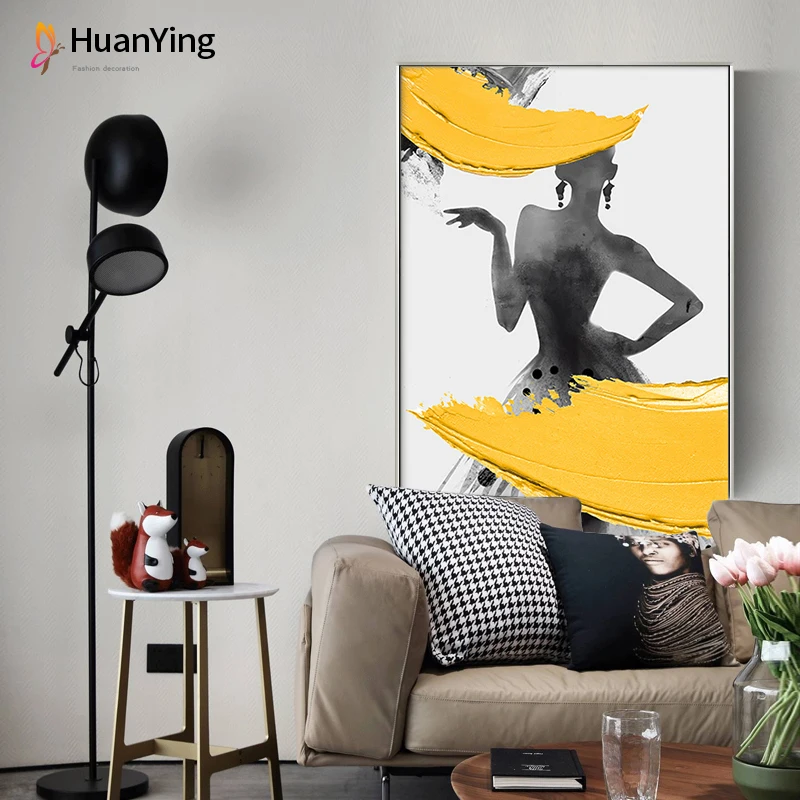 Абстрактная Картина на холсте с изображением женщины с силуэтом платья, плакат с водой, желтый принт, настенные картины для гостиной, прохода