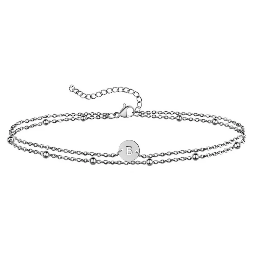 Новый дизайн двухслойная Цепочка Из Нержавеющей Стали Первоначальный очаровательный браслет с буквой для женщин монета 26 Алфавит браслет