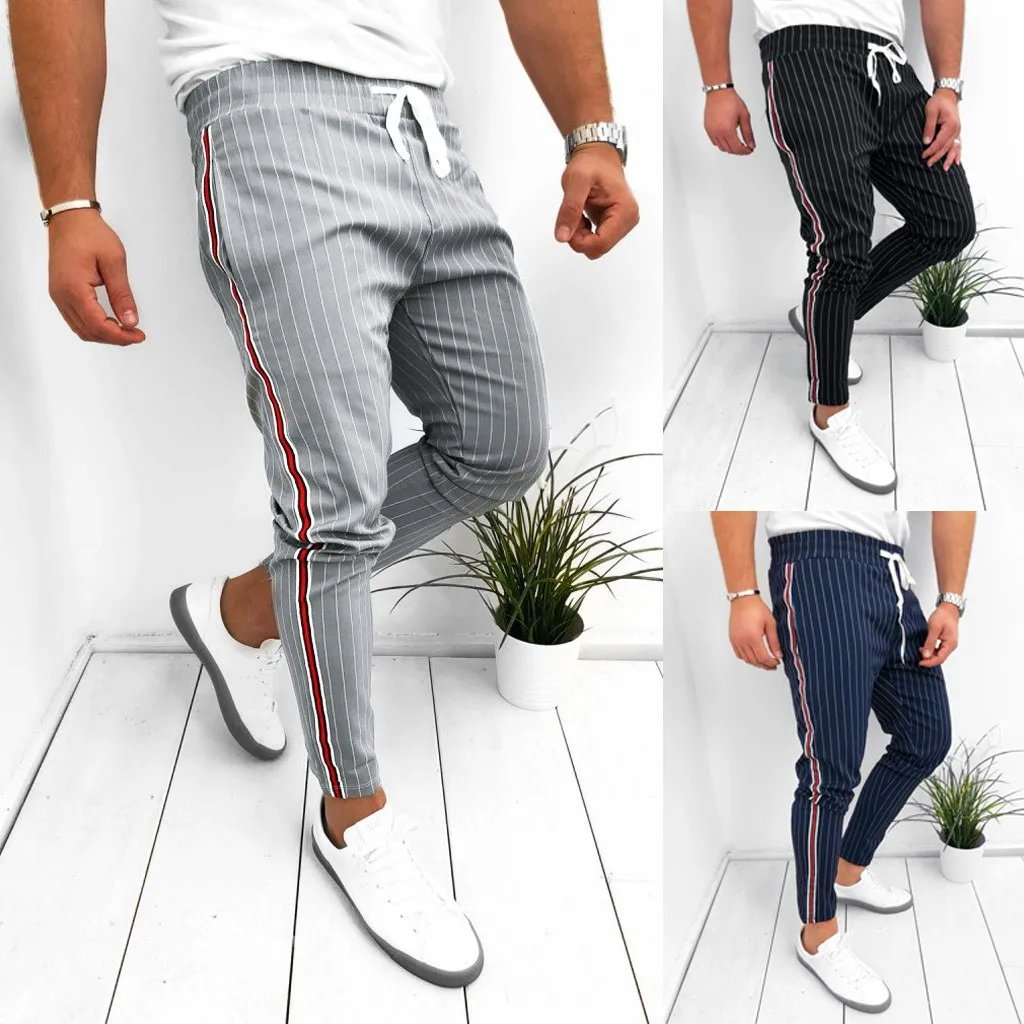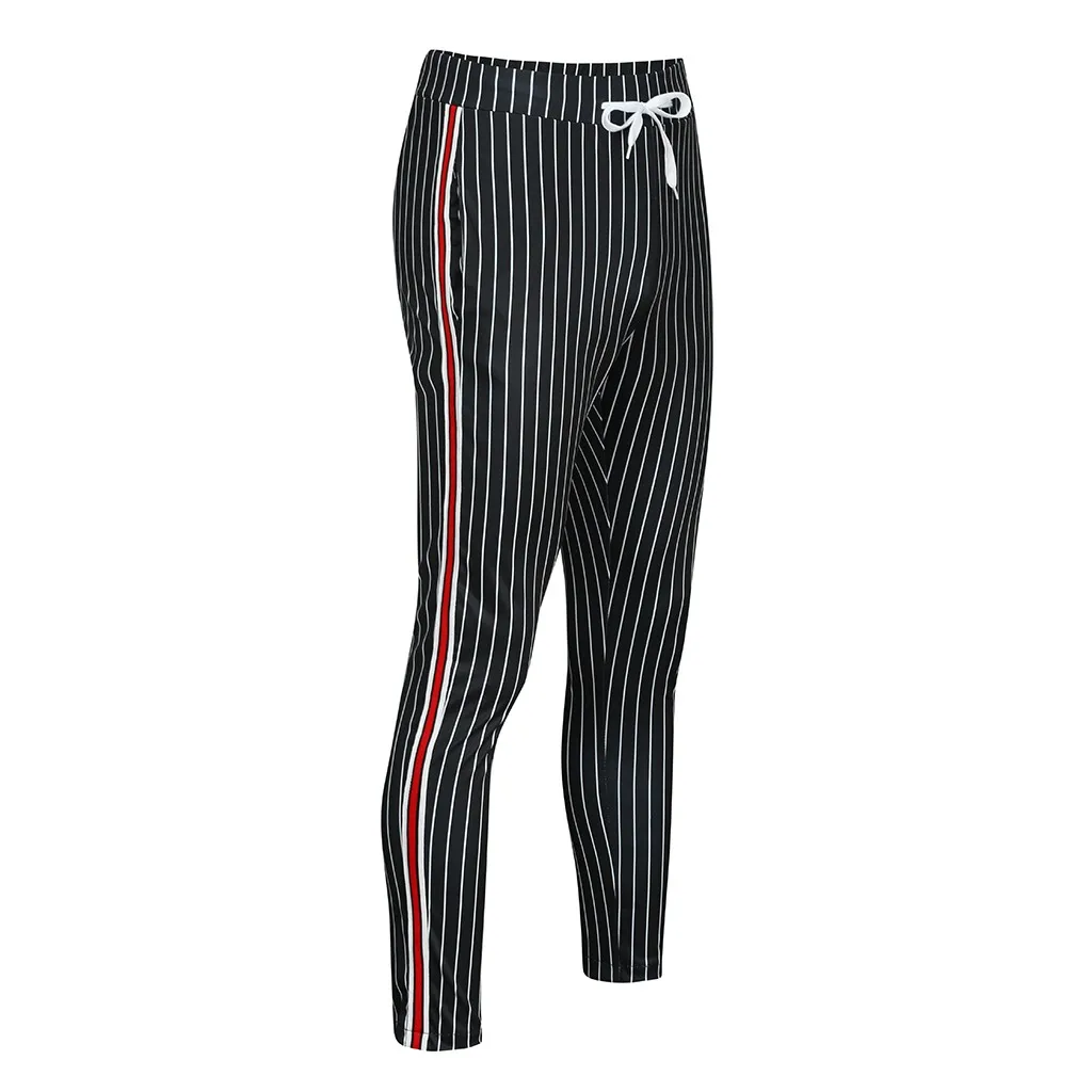 Мужские беговые полосатые Лоскутные Повседневные на шнурке Спортивные брюки, длинные брюки