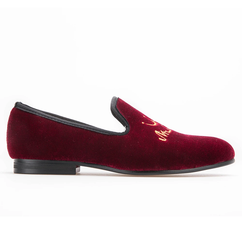 Мужская обувь ручной работы; Черные бархатные туфли с надписью Love...