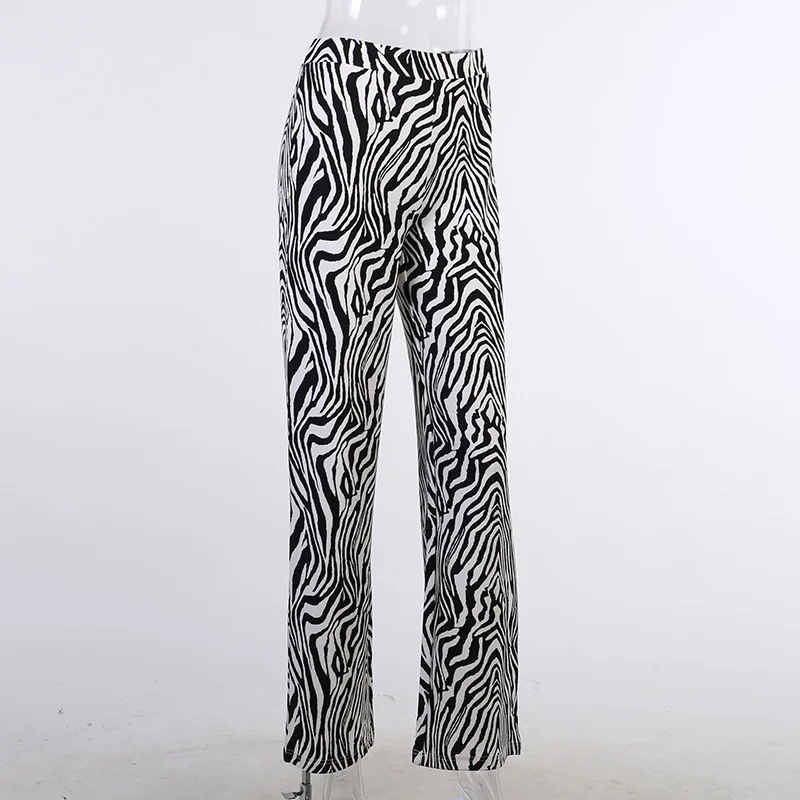 Брюки-клеш InstaHot женские с высокой талией, модные Мягкие штаны в полоску, с животным принтом, уличная одежда, осень 2020