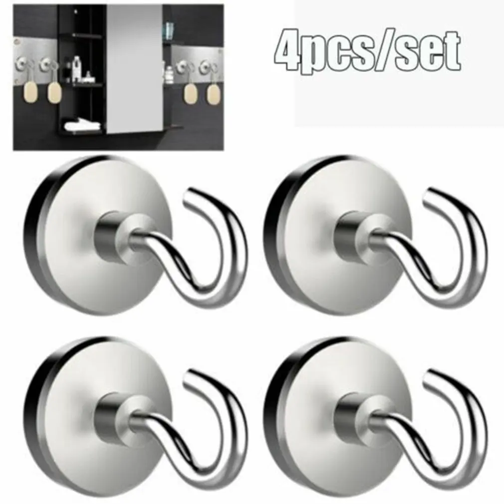 4 шт. прочные магнитные крючки, сверхмощные неодимовые поверхности, не царапают, настенные крючки, магнитный полезный подвесной инструмент