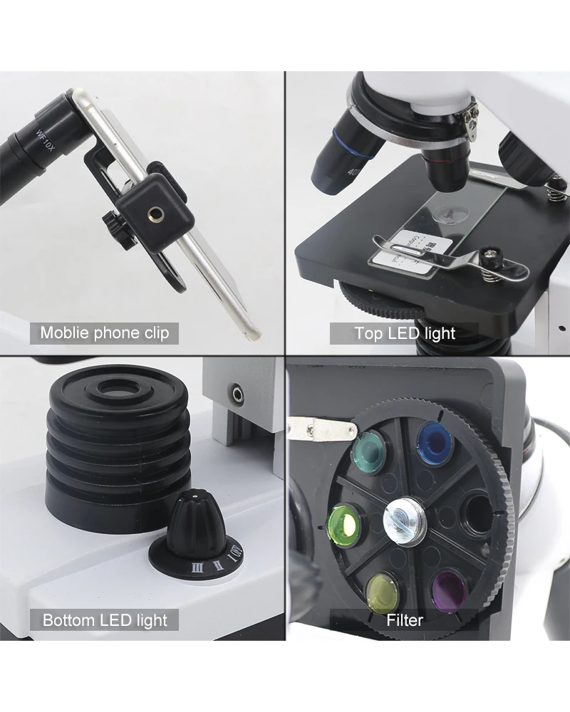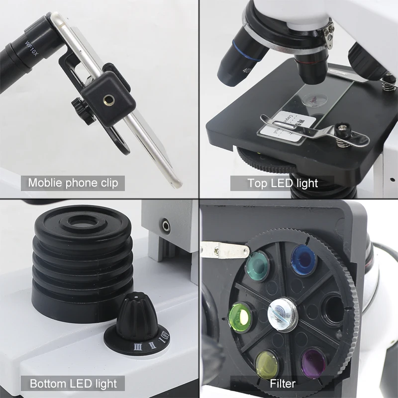 Биологический микроскоп, 1600X, 2 МП, USB, электронный окуляр, цифровой микроскоп, 50 слайдов, со светодиодный Ной лампой, монокулярный микроскоп