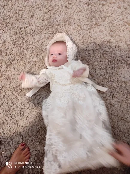 Роскошное платье для крещения с жемчугом, винтажное кружевное платье для девочек с бисером для крещения, платье для младенцев с капотом