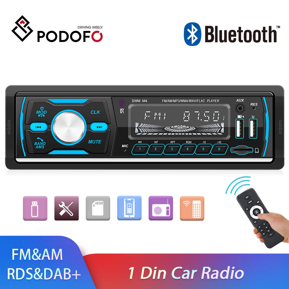 Podofo1 DIN автомобильный Радио Стерео пульт дистанционного управления цифровой Bluetooth аудио музыка стерео/AM/RDS/DAB + USB/SD/AUX-INCar радио MP3-плеер для универсального