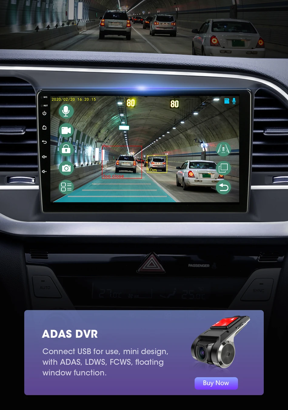 Поддерживает подключение к видеорегистраторУ ADAS. ADAS DVR имеет несколько встроенных ассистивных технологий вождения, вставляя высококачественную карту памяти TF для записи каждого момента вашего вождения.