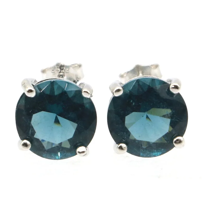 Серьги-гвоздики женские с синим топазом, 9 Х9 мм