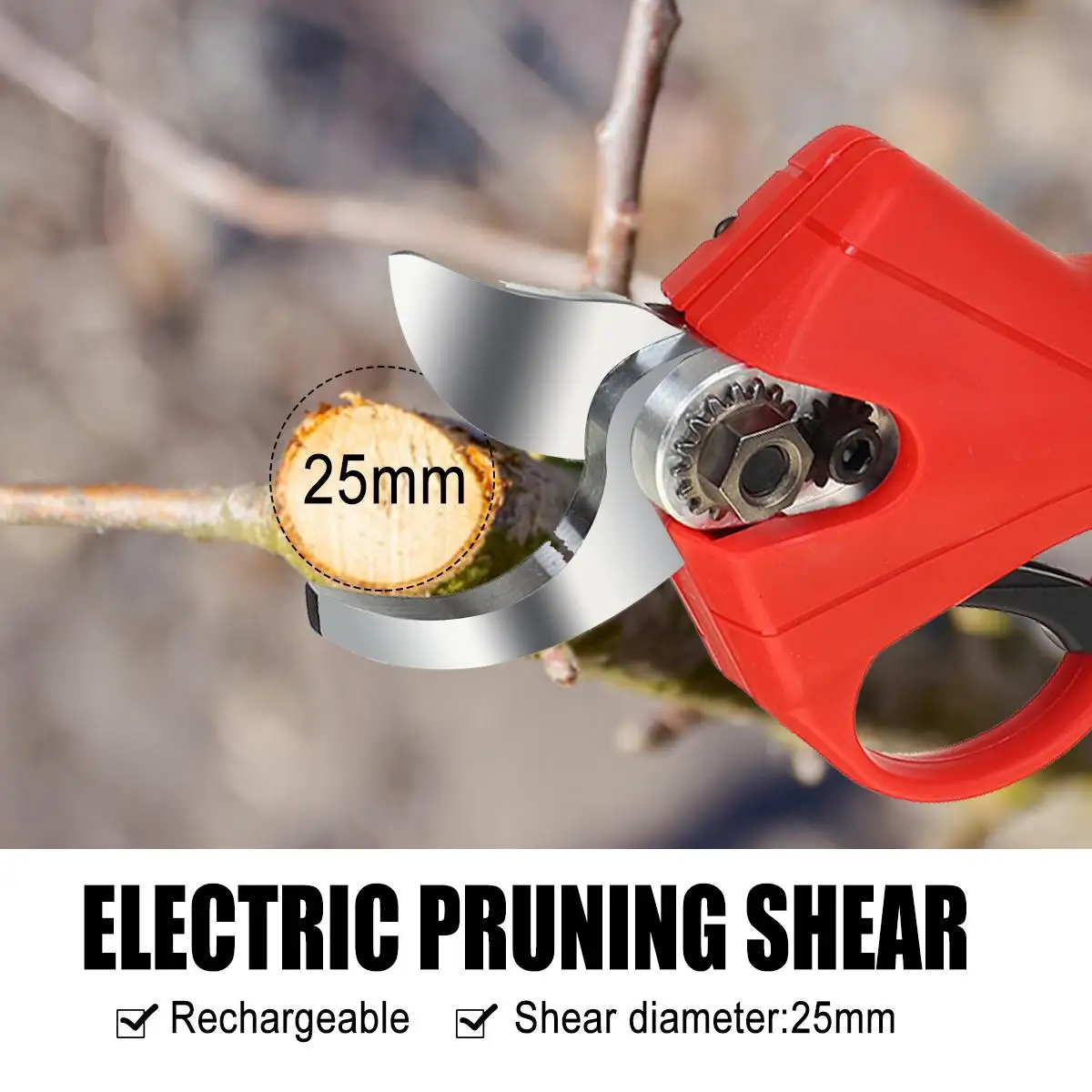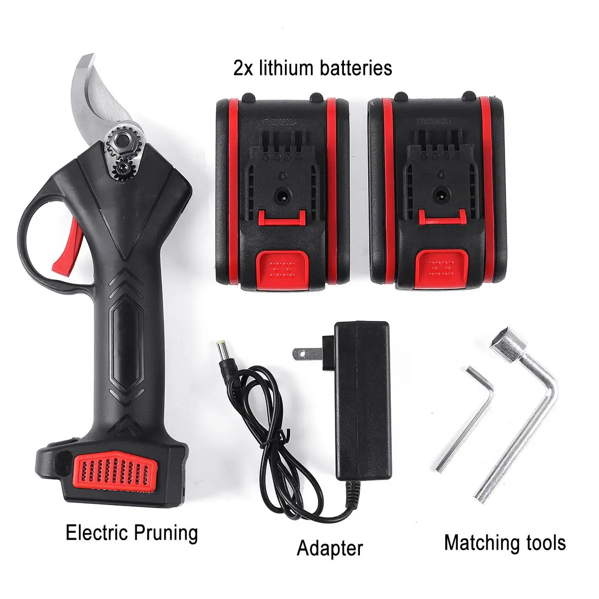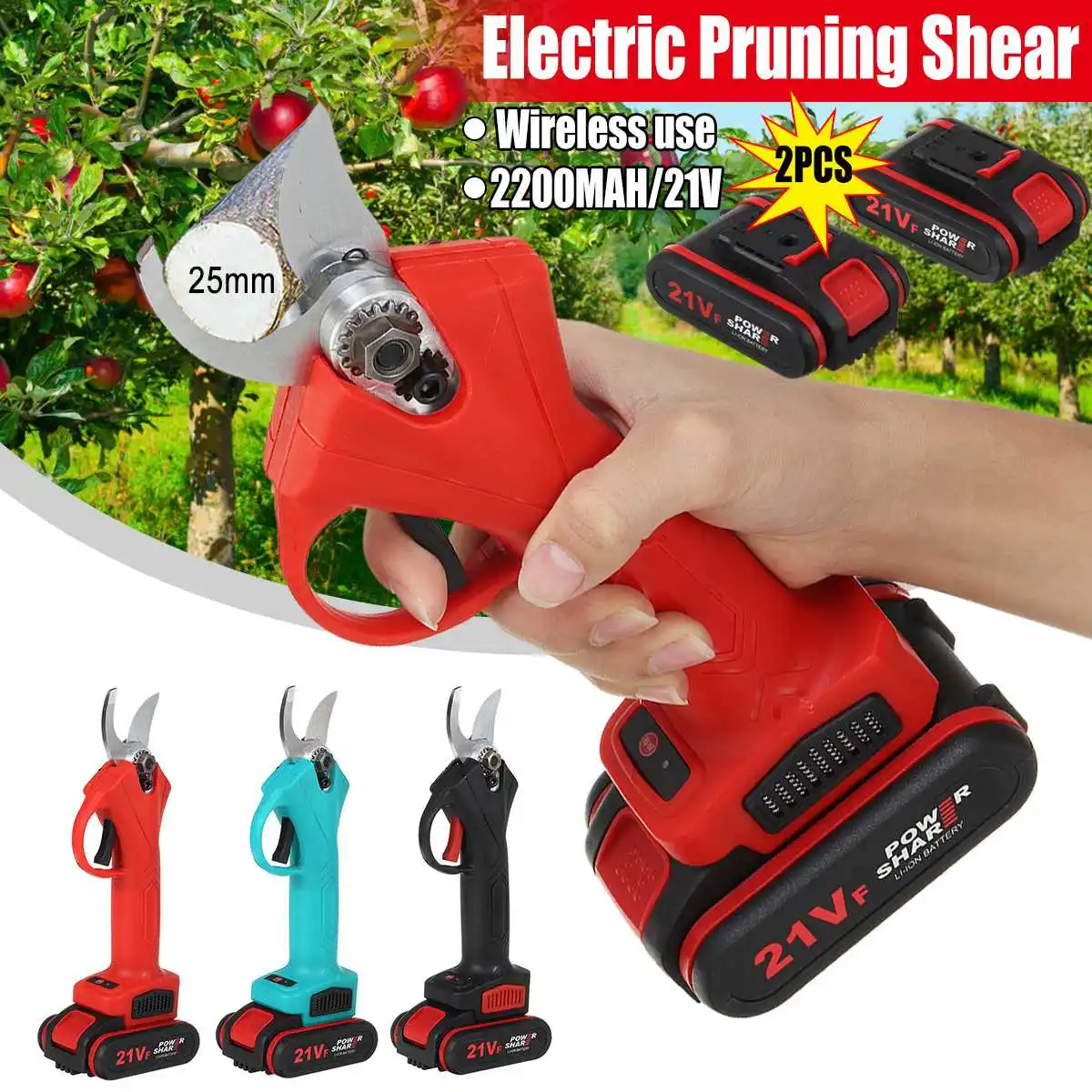 21V Wireless Electric Pruning Pruner Scissors 25mm Shears Garden Pruner Branch Branches Cutter Cutting Tool 2xBattery 2200mAh