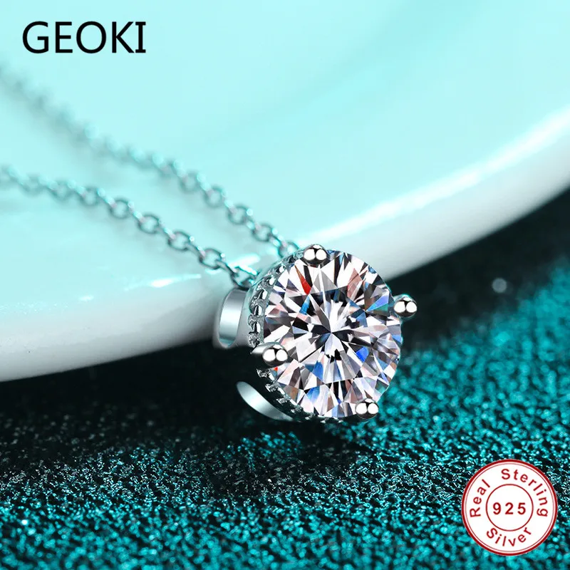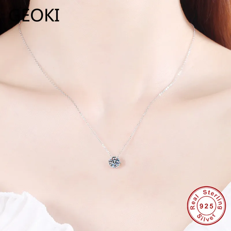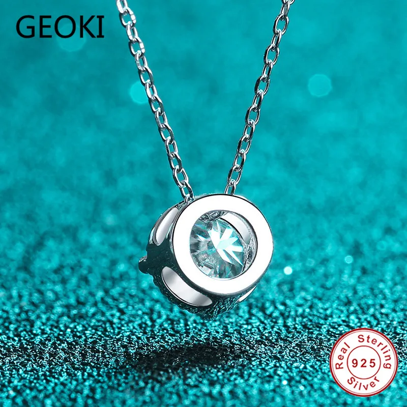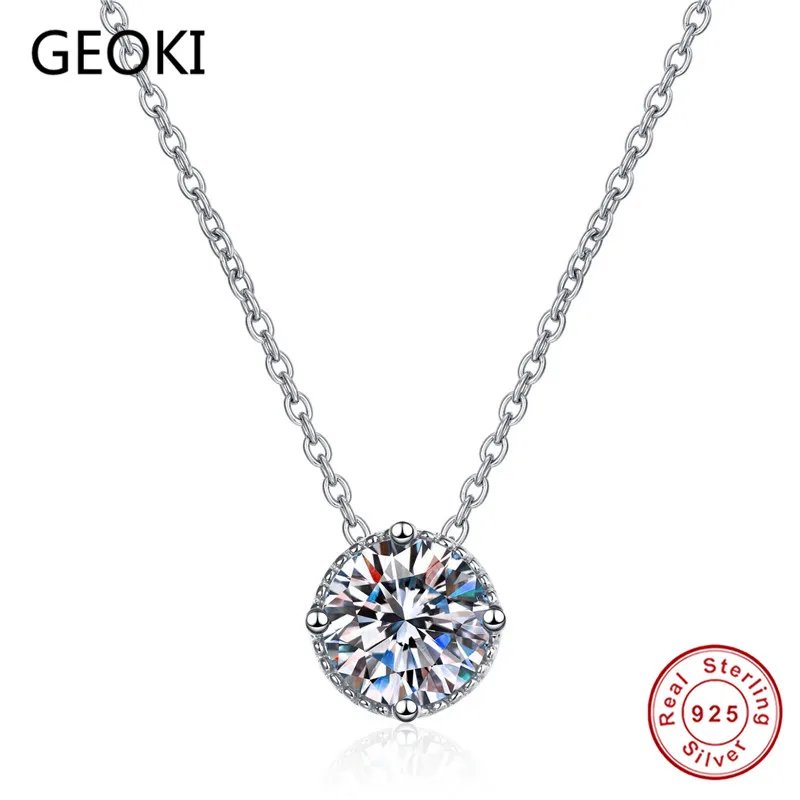 Ожерелье Geoki с подвеской из серебра 925 пробы с муассанитом круглой огранки 1 карат