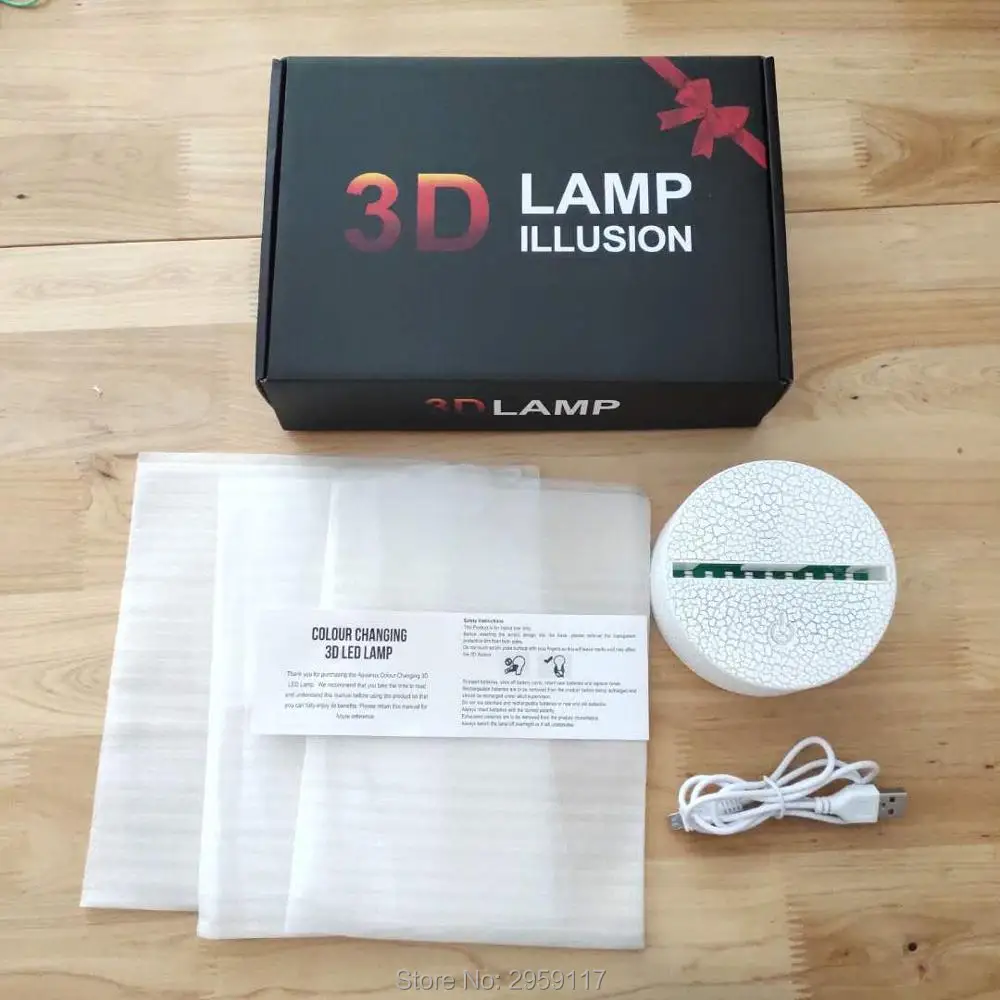 Не только стереоскопическое 3D освещение, но и показывает ваш красочный эффект освещения, сенсорный переключатель для управления цветом освещения, семь цветов и один градиентный цвет на выбор, просто коснитесь кнопки переключателя на основании из АБС-пластика