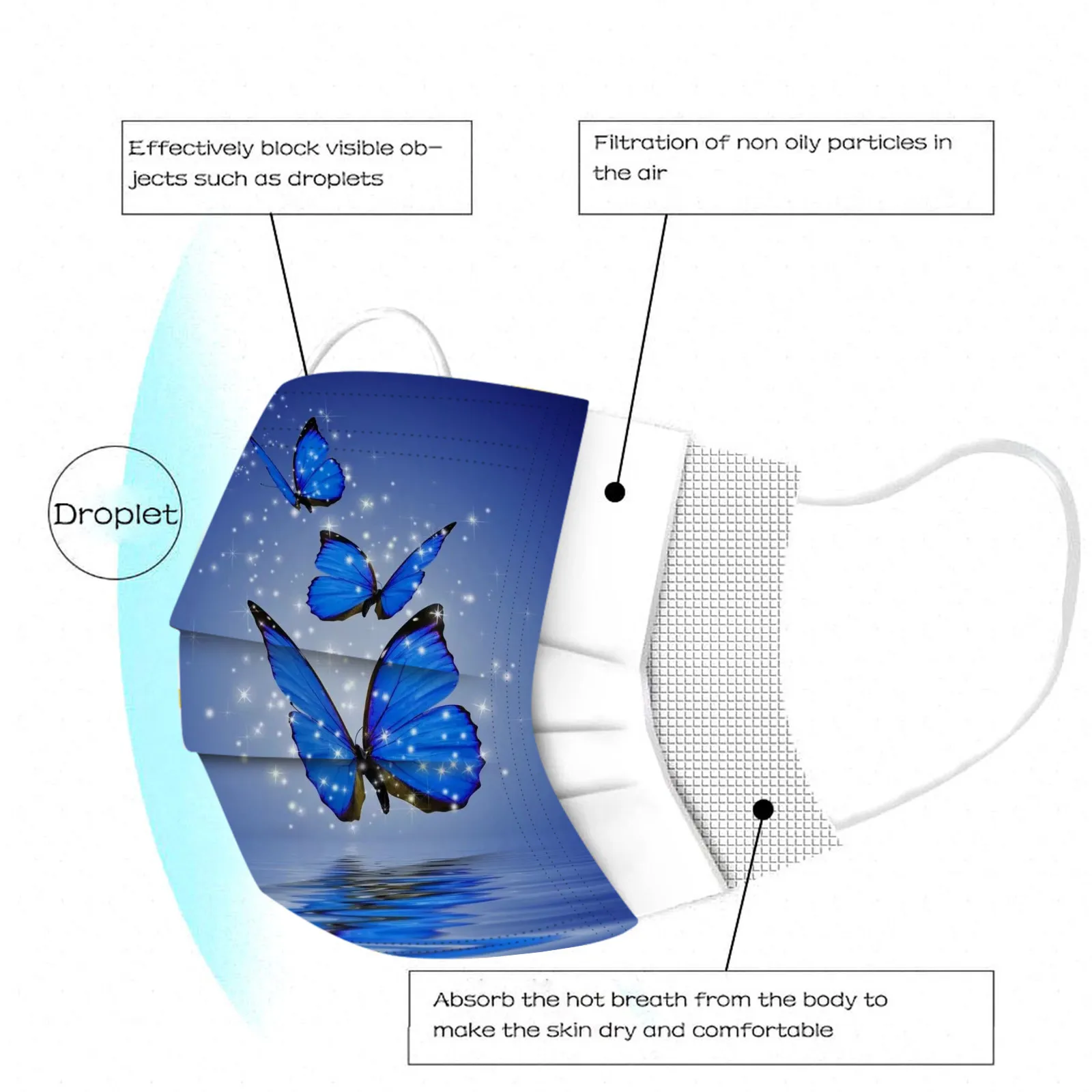 Одноразовая маска изготовлена из 3-слойного нетканого материала Безопасен для здоровья и использования. Дышащий и красивый материал Узоры, что делает его полезным и модным. Специальный 3-слойный нетканый Дизайн, обеспечивает некоторую защиту от пыли, выхлопных газов автомобиля, Эластичная петля для ушей, легко надевается и не давит на уши.