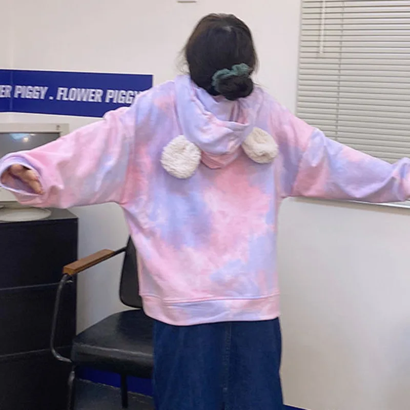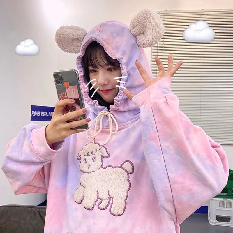 Осень 2022, Женская флисовая толстовка с капюшоном и ушками, в стиле Харадзюку
