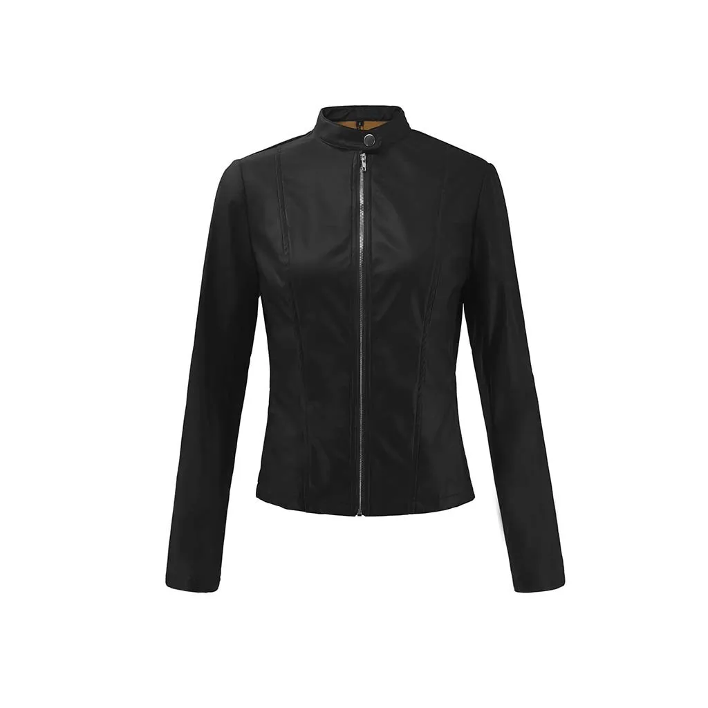Куртка женская кожаная на молнии, приталенная Короткая Повседневная...