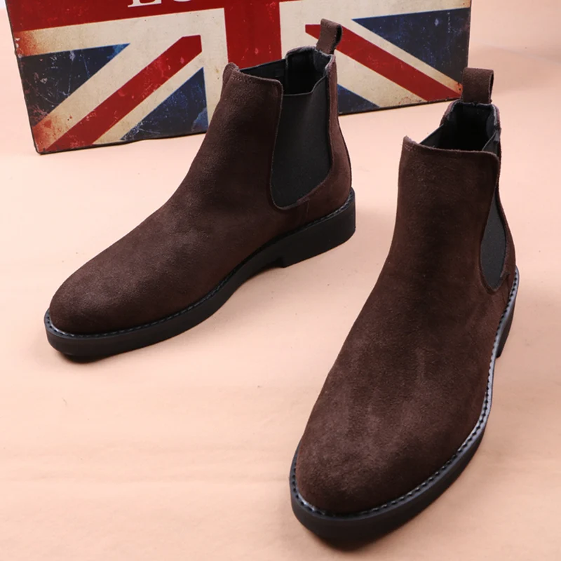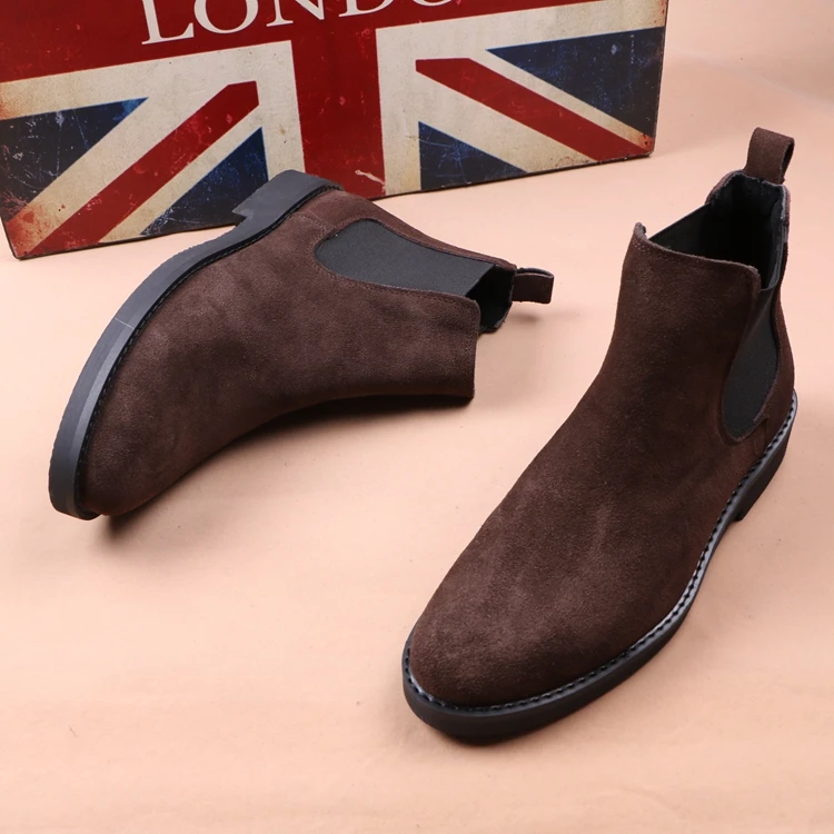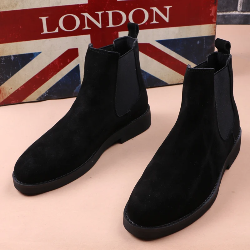Ботинки мужские, из коровьей замши, на платформе, в ковбойском стиле