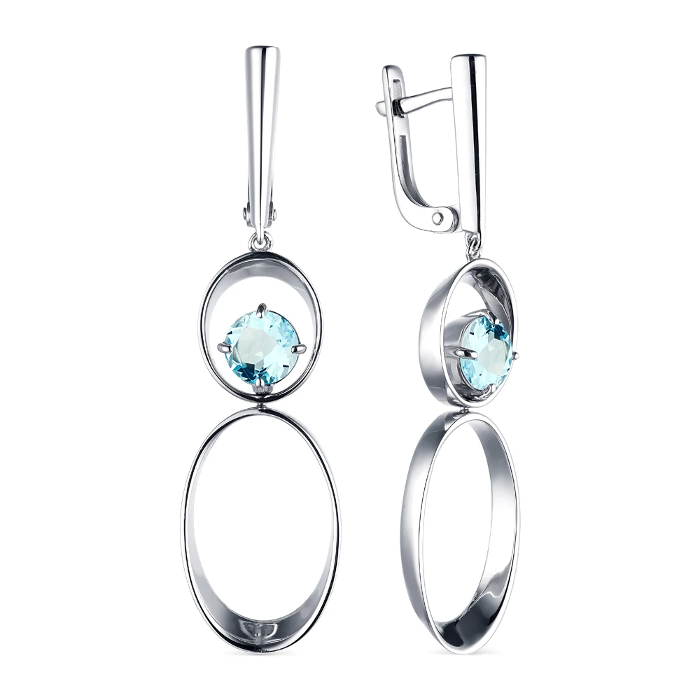 Длинные серьги 2021 тренд из родированного серебра 925 с полудрагоценными вставками (топаз sky blue)