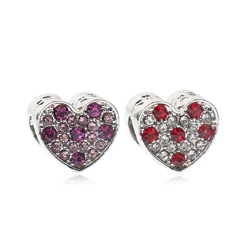 Модные подвески в виде сердца, подходит для браслета Пандоры и браслета с бусинами, ювелирные изделия для женщин, подарки, ювелирные изделия с кристаллами