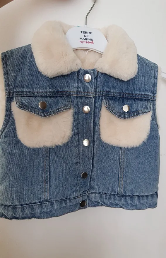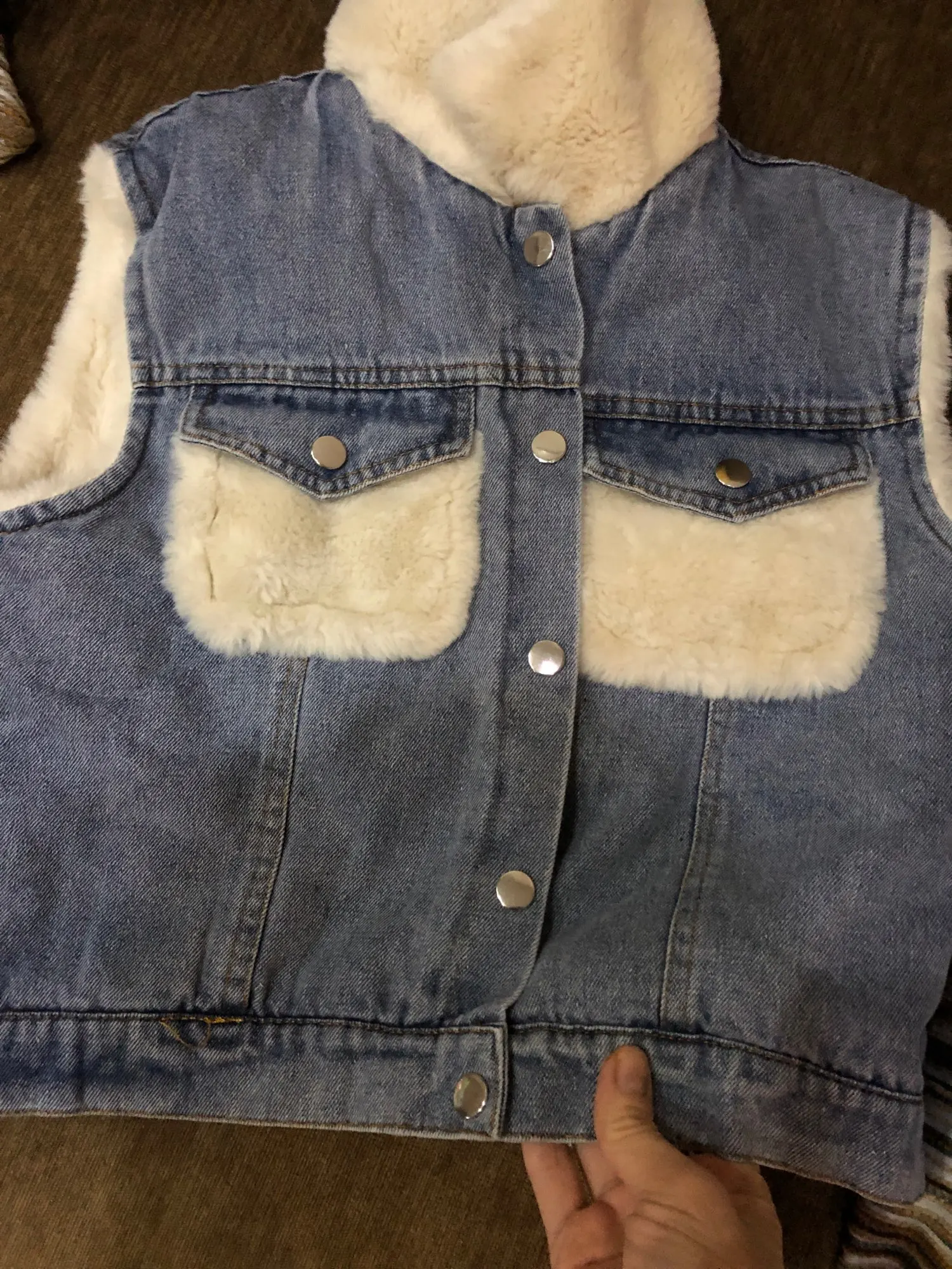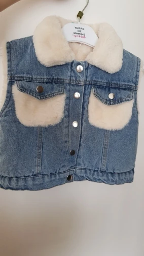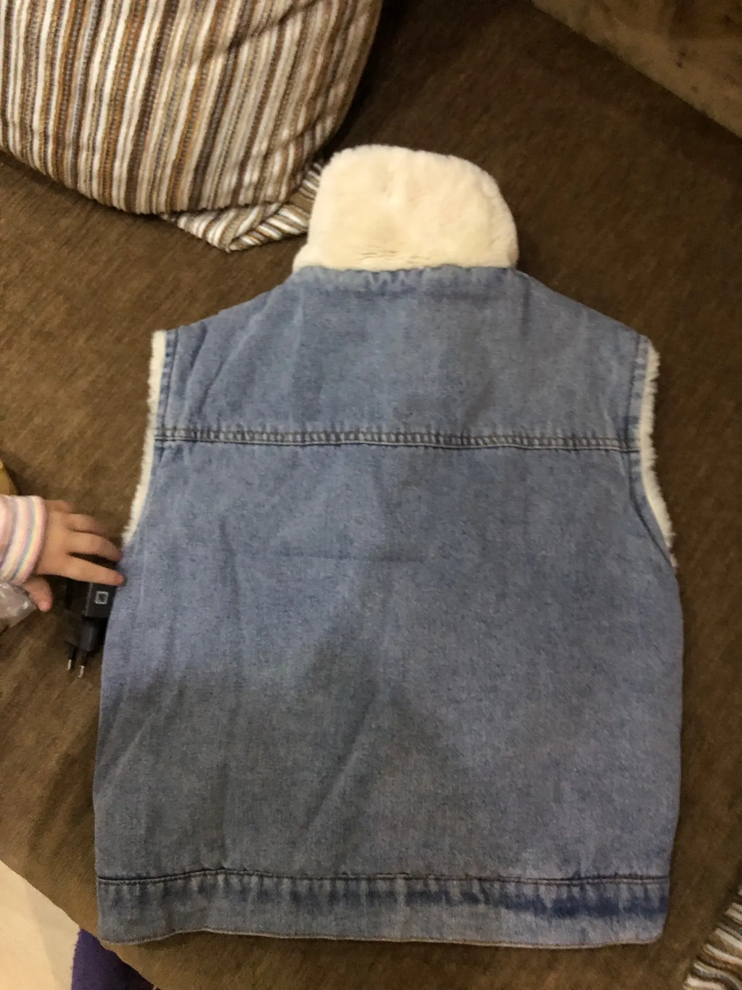 Доставлено за 2 недели, очень качественная джинсовая жилетка, беленькая внутри полностью таким мехом, кнопки отлично работают, смотрится дорого. мальчику 8 мес. она большая нам, хоть и написано 80см, думаю и на осень отлично подойдет.Спасибо продавцу!!!