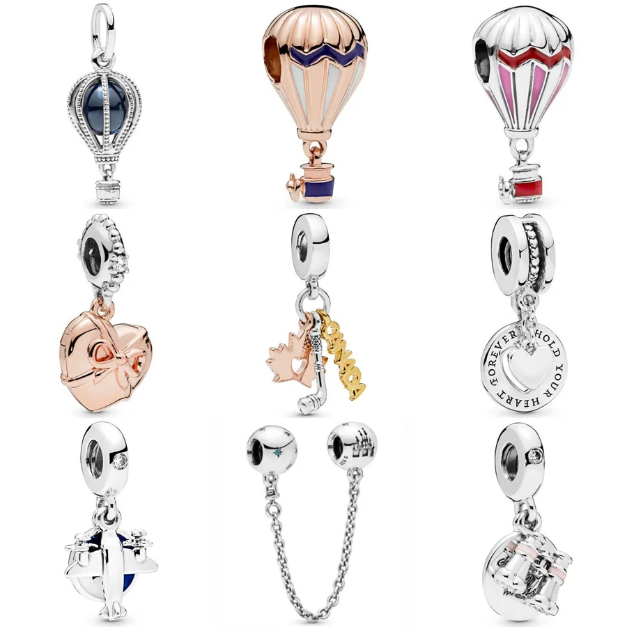 Подвеска-Шарм для браслета из стерлингового серебра 925 пробы в виде розового шара, самолета, бинокля навсегда, сердца
