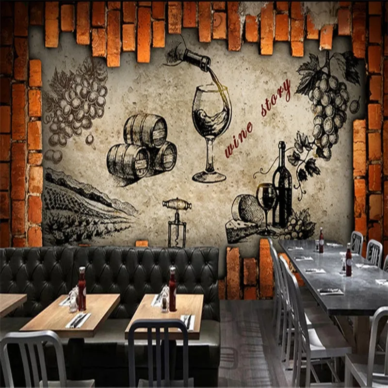 Винный шкаф в стиле ретро, винный погреб, домашний настенный бумажный 3D декор для винного двора, настенная бумага 3d