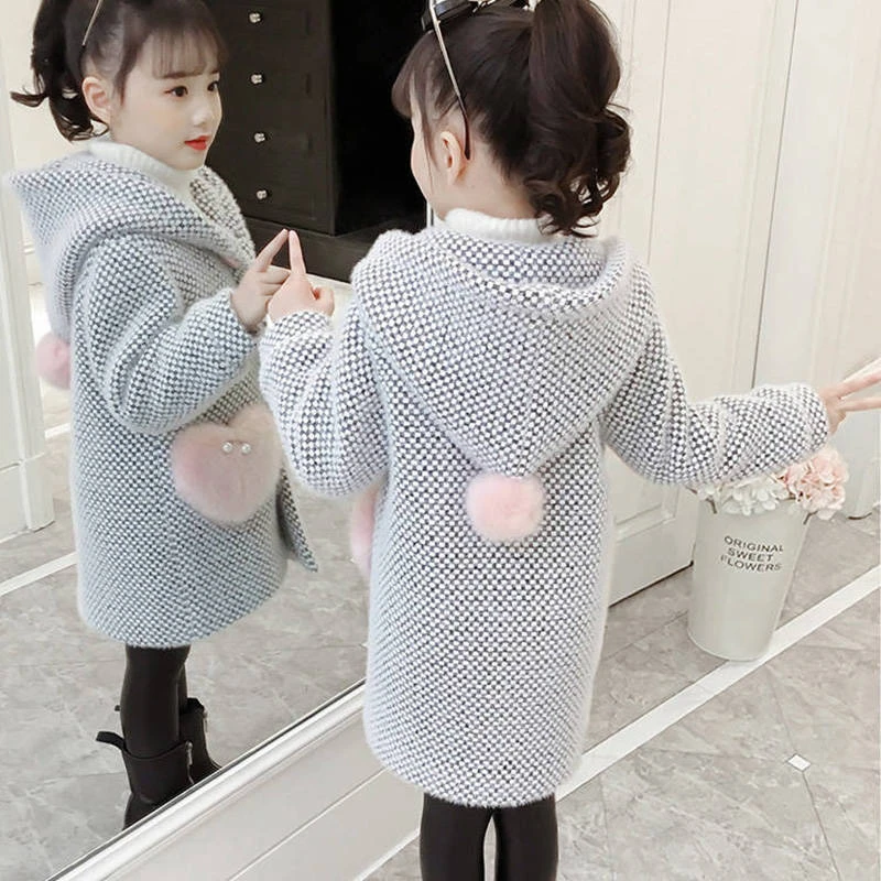 Пальто шерстяное для девочек-подростков, теплая длинная верхняя одежда, осень-зима, 2021