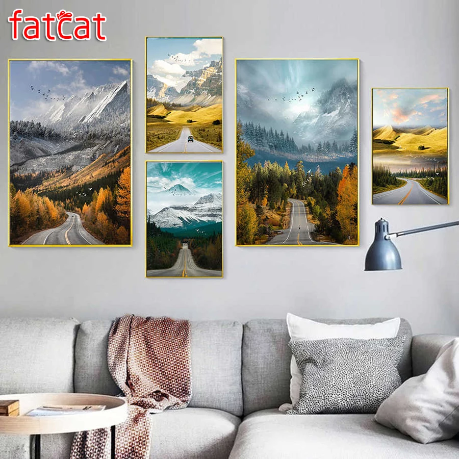 Алмазная 5D живопись с природным пейзажем FATCAT, картина сделай сам из гор, полная выкладка из круглых страз, мозаика для вышивки, AE2499
