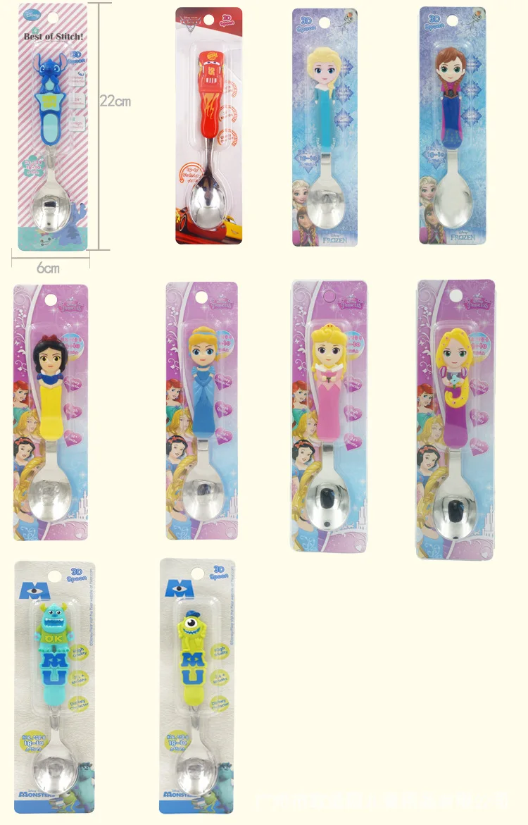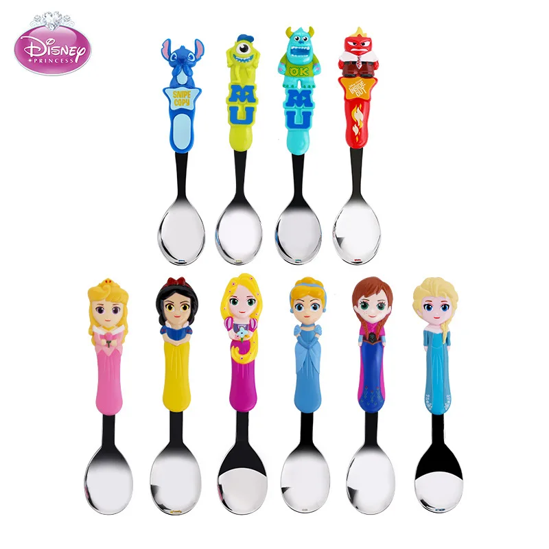 Детская мультяшная 3d-ложка из нержавеющей стали Disney, столовая посуда для кормления детей, стильный подарок принцессы
