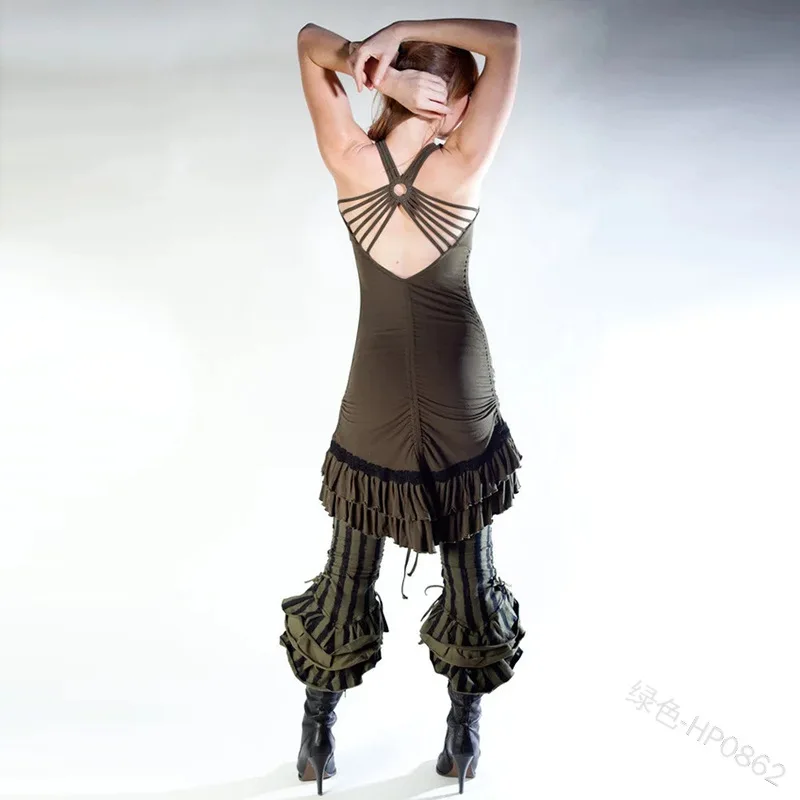 Брюки женские, в готическом стиле, с высокой талией, в полоску, с карманами
