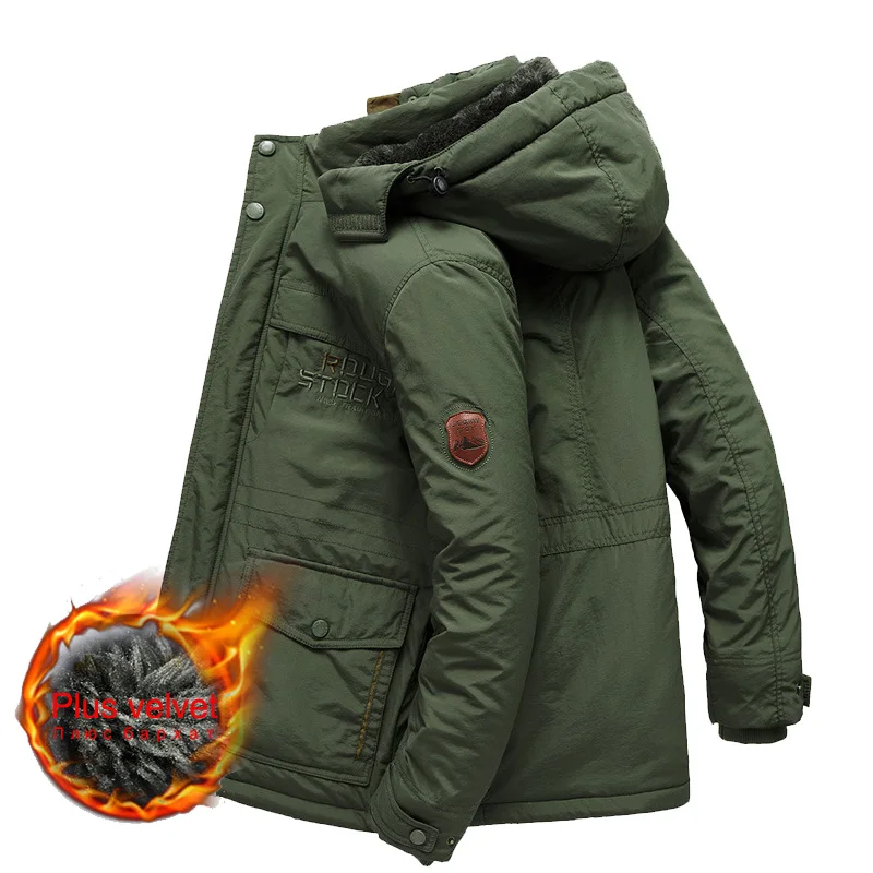 Модная парка с подкладкой, мужская зимняя куртка, бархатное пальто ...