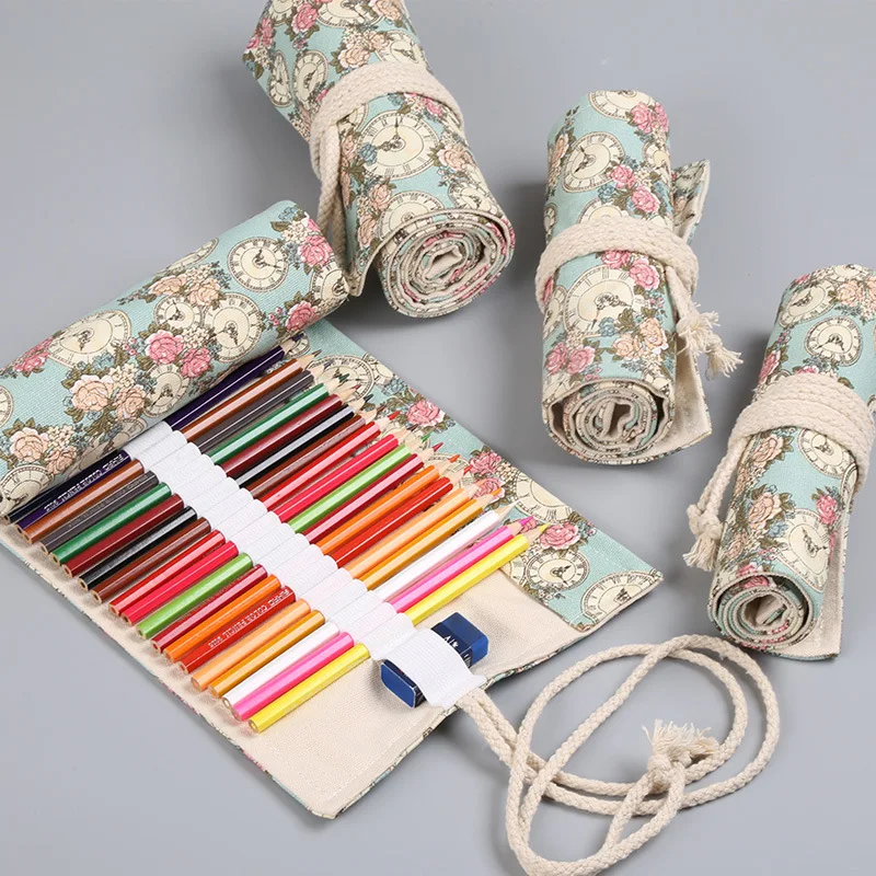Холщовый чехол для карандашей, 364872 отделений, для кистей, маркеров, школьных принадлежностей, A6756