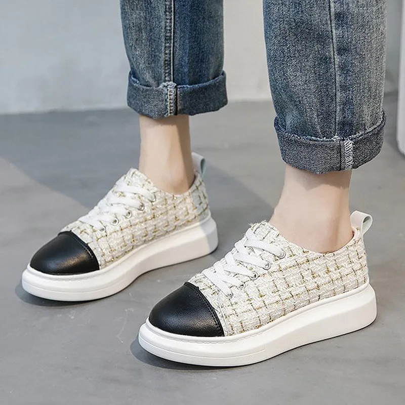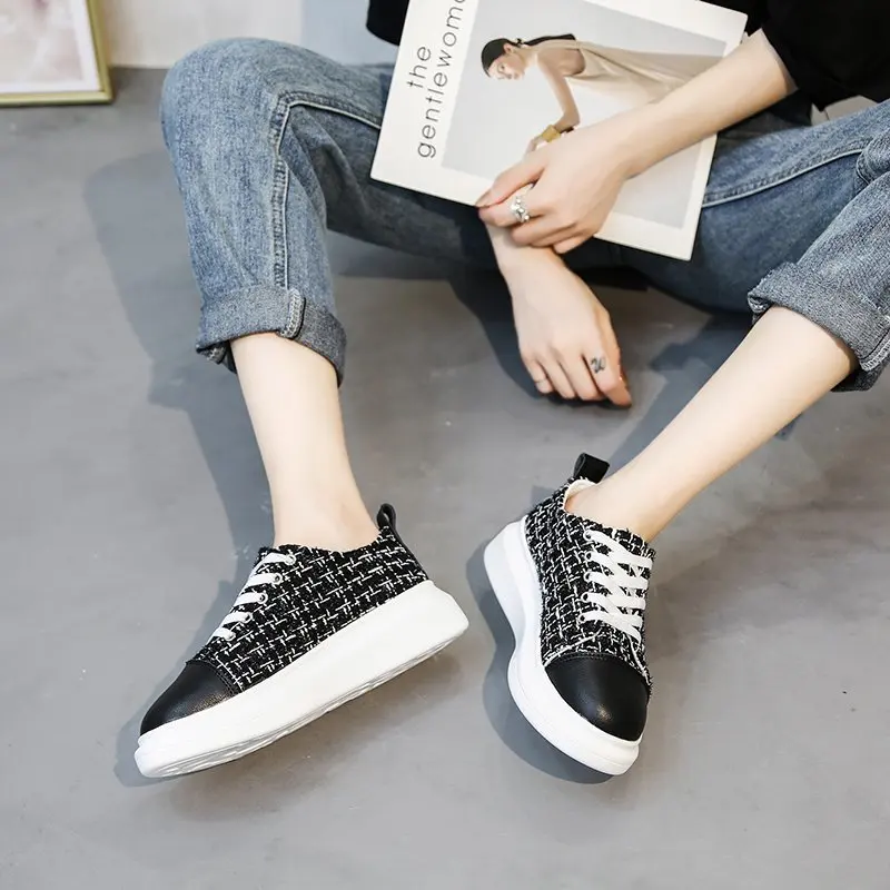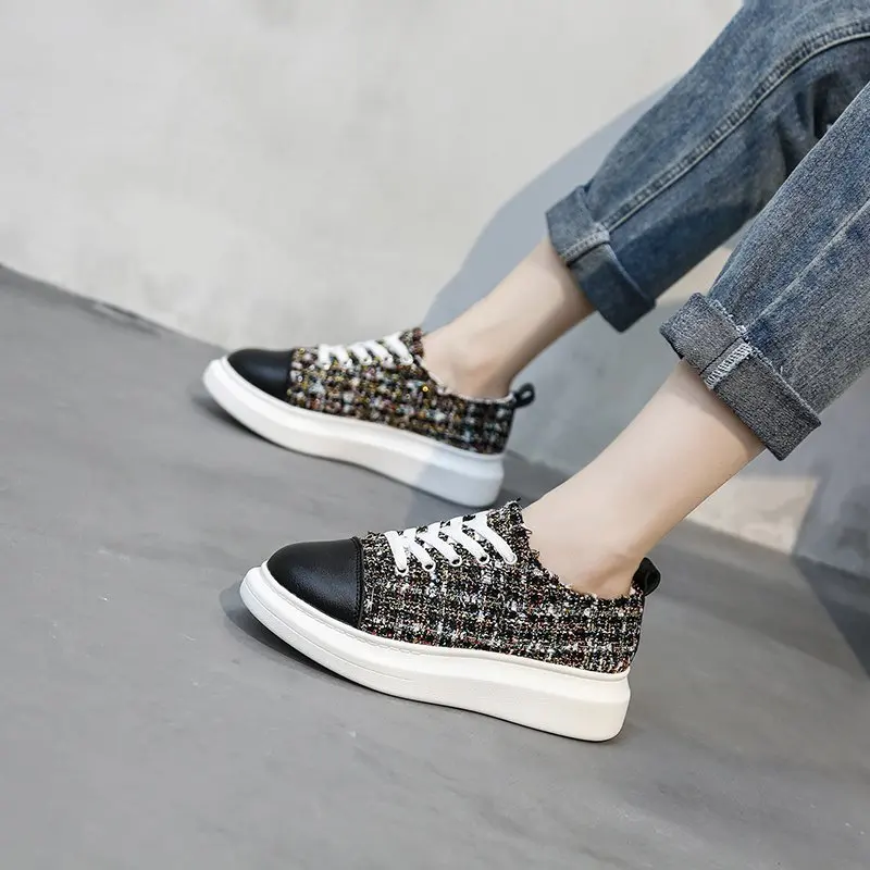 Кроссовки женские твидовые, на толстой подошве, повседневные, в клетку, 8752C, 2020
