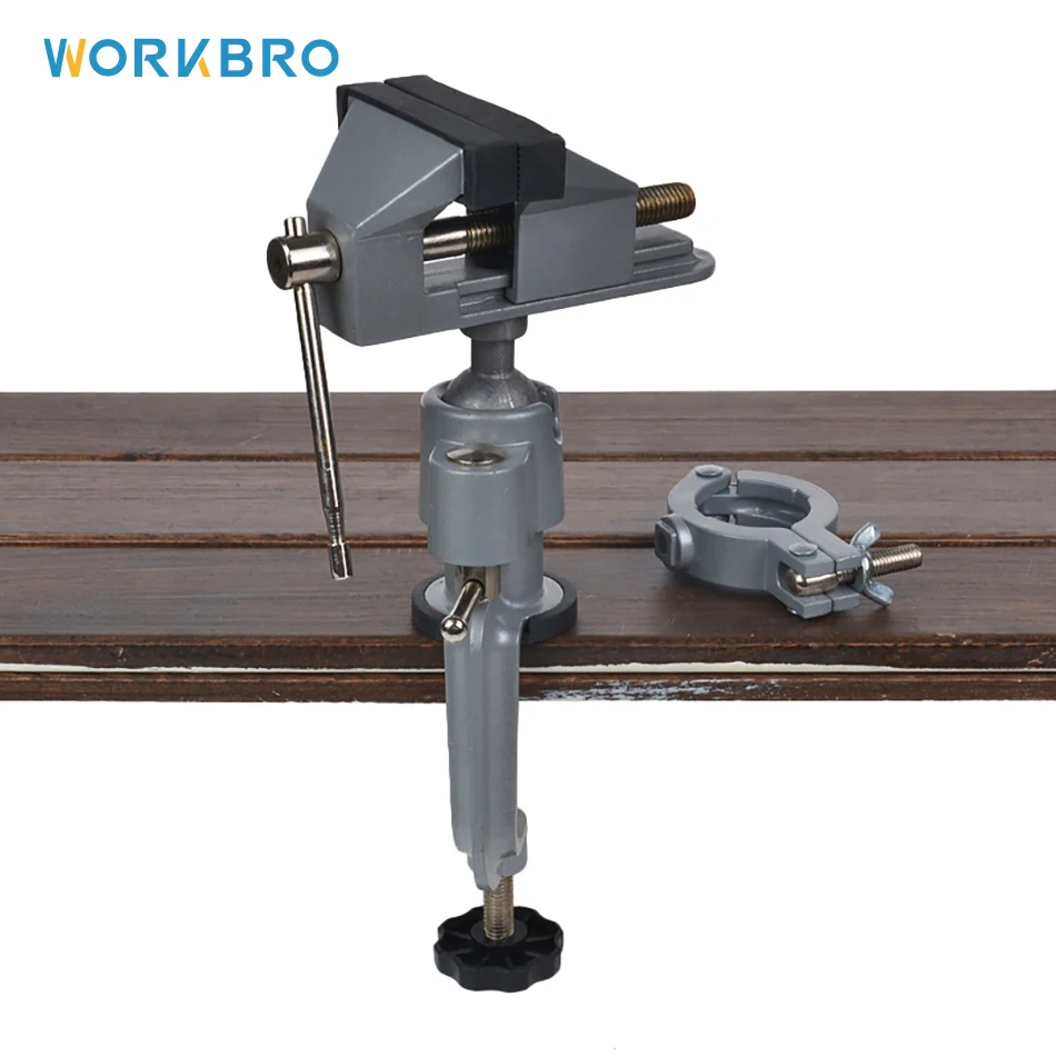 Настольные тиски WORKBRO 2 в 1, Настольный зажим 360, зажим Настольный шлифовальный станок, держатель дрели Dremel для крафтовых моделей, инструментов, вращающийся инструмент