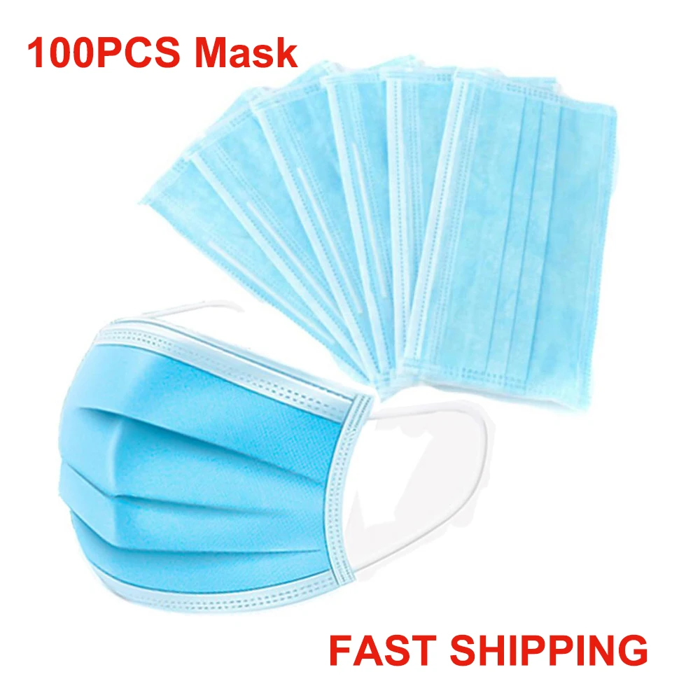 Маска одноразовая трехслойная из нетканого материала с фильтром, 100 шт.