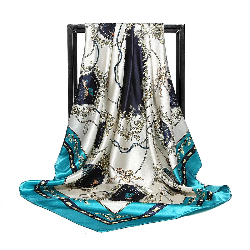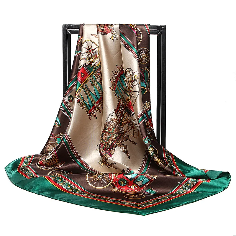 Шелковый шарф, роскошные брендовые носовые платки для женщин, шаль 90*90, большой шарф, хиджаб, оптовая продажа, атласный тюрбан, Трамп
