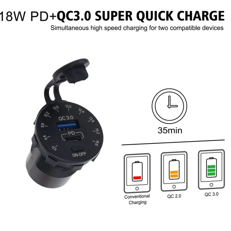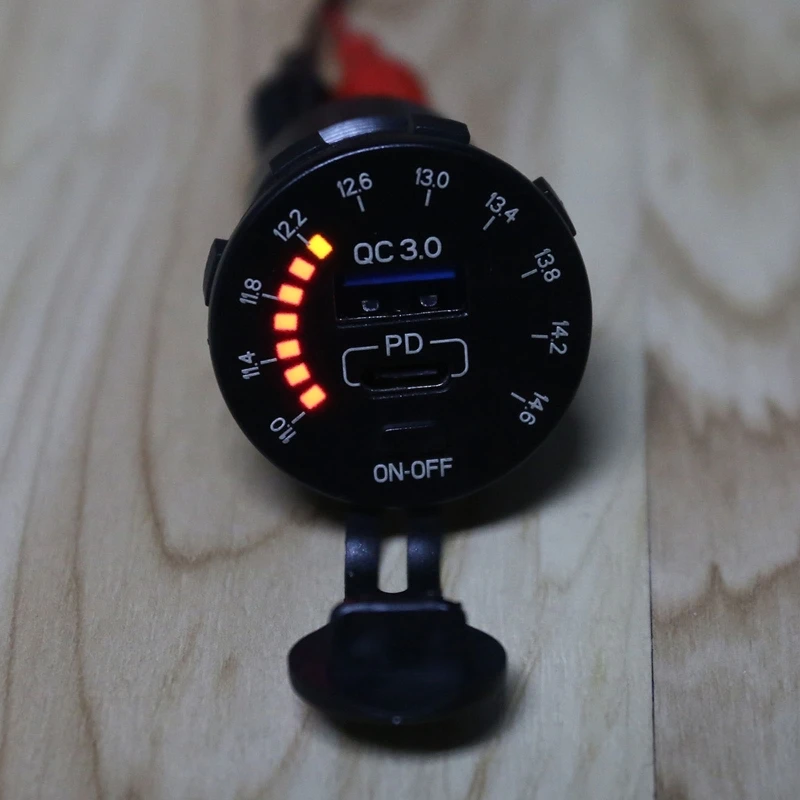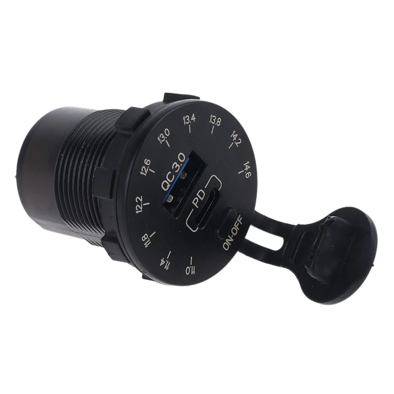 Водонепроницаемое автомобильное зарядное устройство, 12 В, быстрая зарядка QC3.0, USB 18 Вт, Тип C, PD, со светодиодом переключатель вольтметра, для внедорожников, мотоциклов, лодок