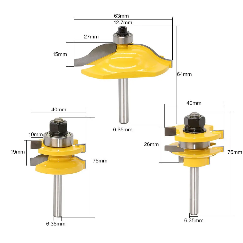 3 шт.компл. фреза с хвостовиком 14 мм, резьба по дереву, приподнята...
