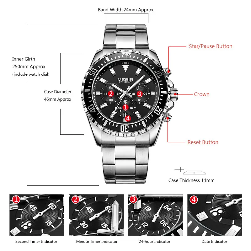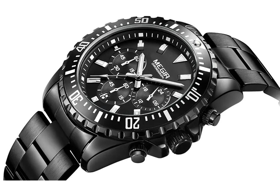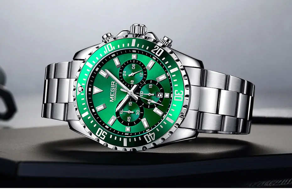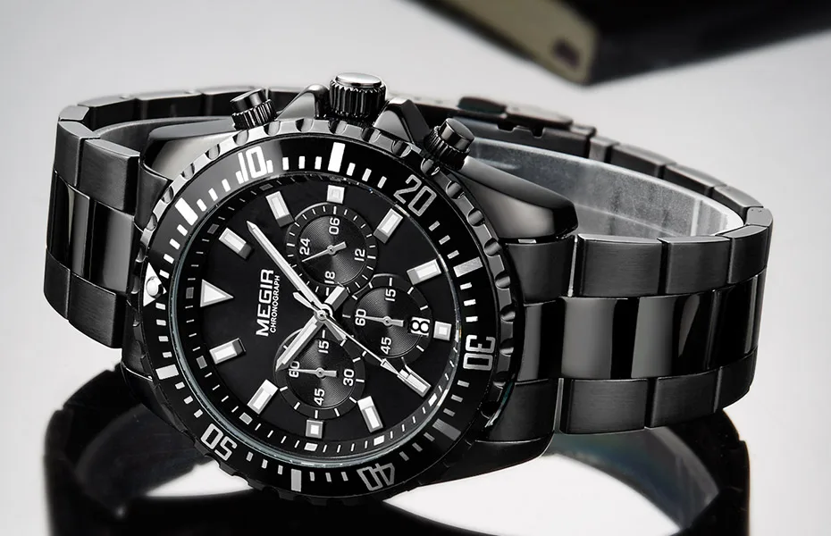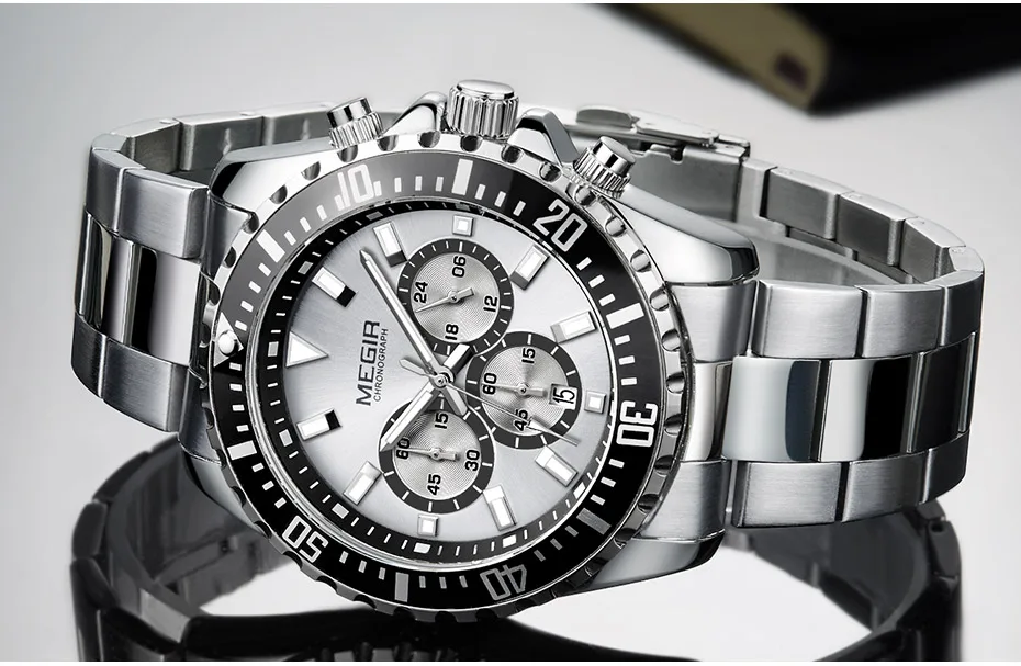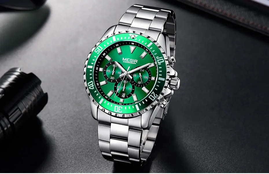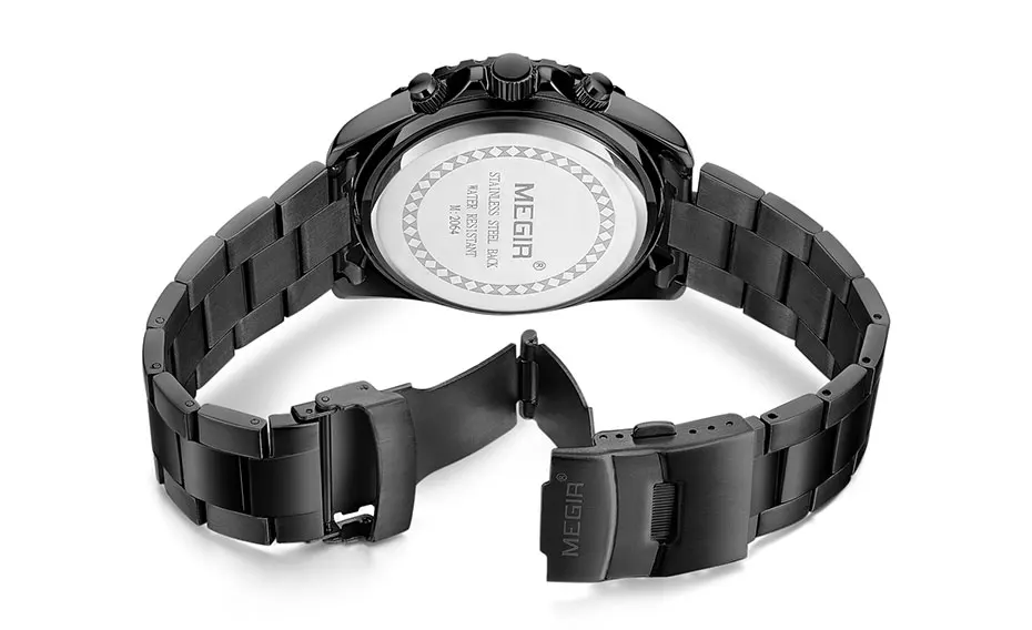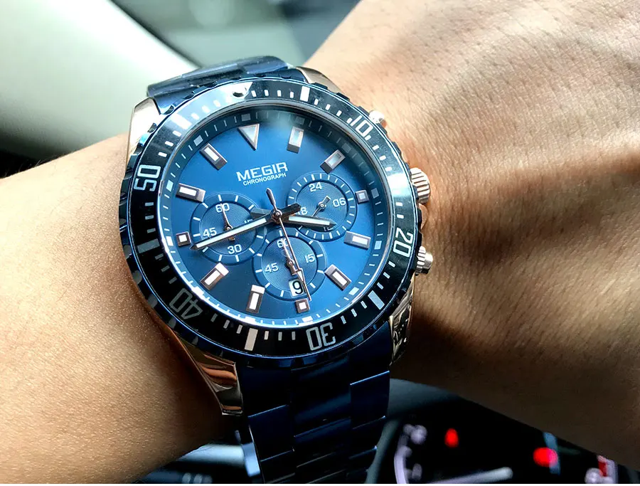 Часы MEGIR мужские кварцевые с хронографом, светящиеся синие наручные, с ремешком из нержавеющей стали