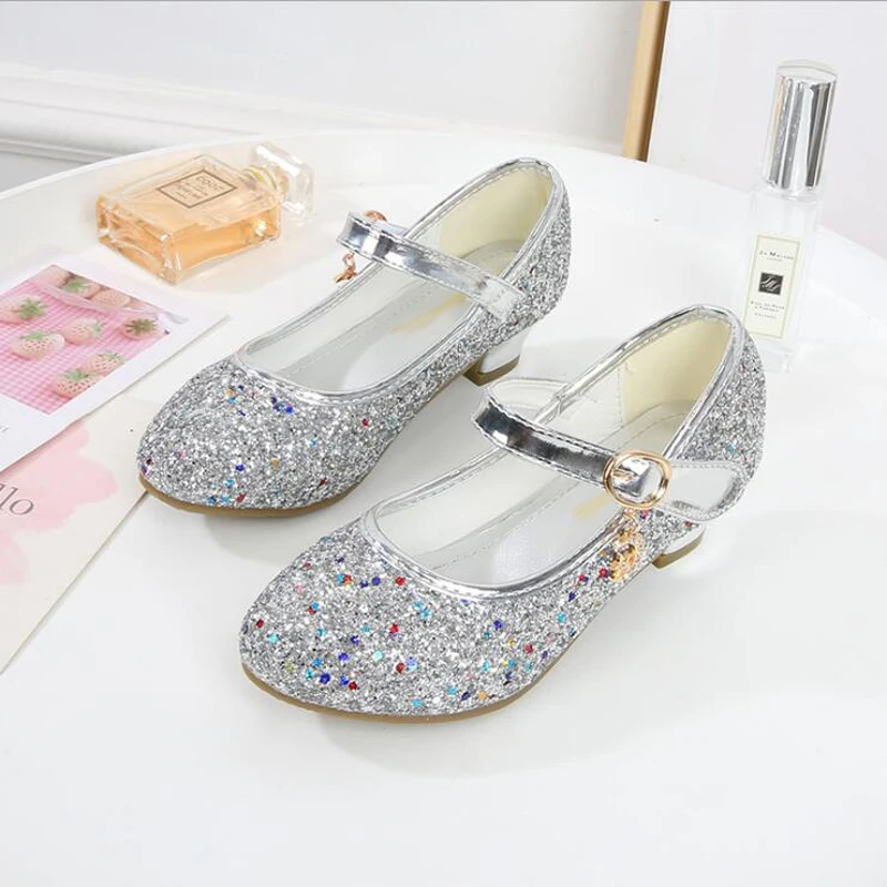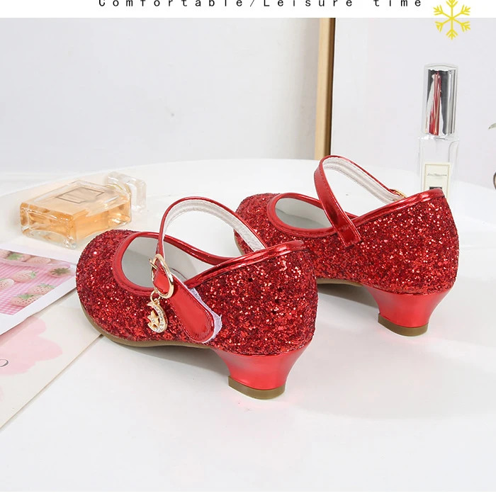 Детские кожаные туфли на высоком каблуке, свадебная обувь принцессы для девочек, кожаные туфли с красными блестками, обувь для студентов и танцев, сандалии для девочек, весна