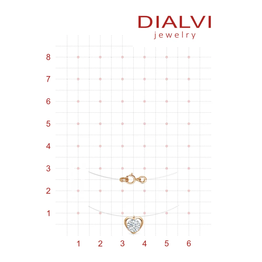 Украшение ювелирное колье DIALVI "Золотое сердечко", подвеска-бегунок из золота 585 пробы на леске, круглый фианит фианит 6 мм