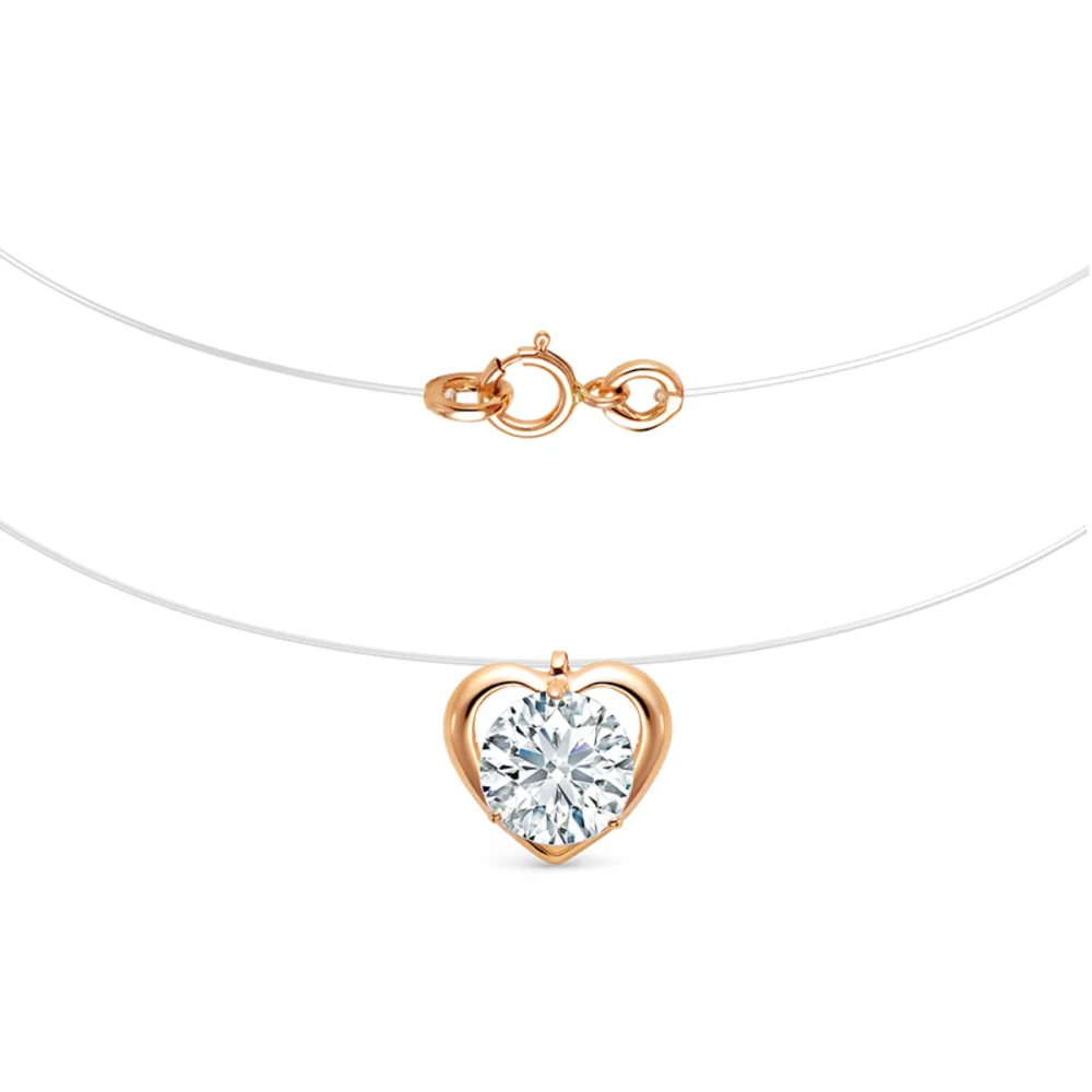 Колье-невидимка из коллекции "невесомость" с нежной подвеской-бегунком в форме сердца из золота 585 пробы. Подвеска инкрустирована ярким сверкающим фианитом бриллиантовой огранки. Отличное колье для тонких чувственных натур, будет хорошим подарком для любимого человека. Надёжный шпрингельный замочек также выполнен из золота 585 пробы. Изделие изготовленно и апробировано в России.