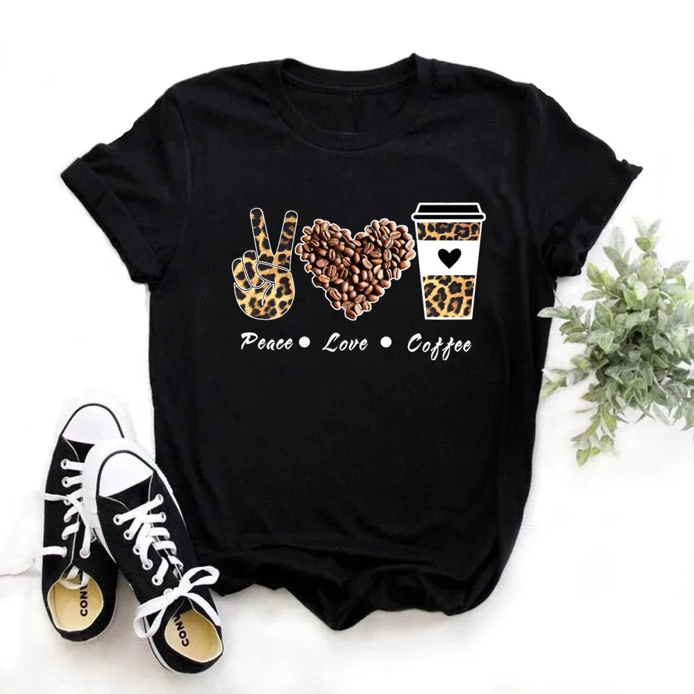 Модная женская футболка 2022, топы, футболка, леопардовая футболка, уличная одежда Love Coffee, Повседневная футболка с круглым вырезом, летние женские футболки, женские футболки